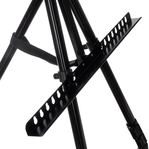 Телескопични крака, заключващи механизми и горна скоба, които надеждно държат платното. Подходяща за рисуване седнал и прав, лесно се сгъва за пътуване.