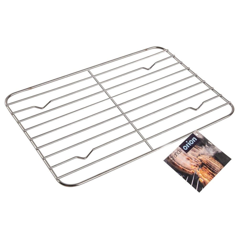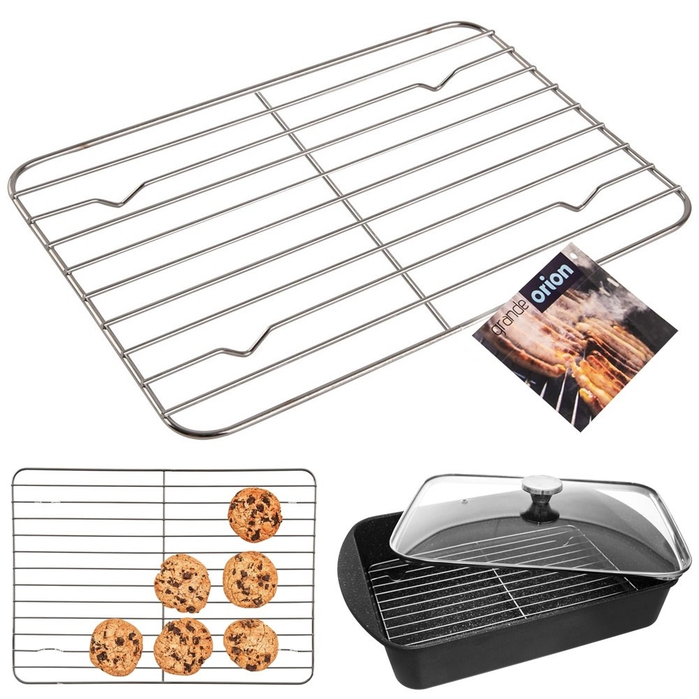 Универсална метална скара за тава и охлаждаща решетка в едно с размери 32 × 23 × 1,2 cm. Идеална за печене на месо без излишна мазнина, за охлаждане и декориране на торти и сладки, както и като топлоустойчива подложка за горещи съдове. Изработена от хромирана стоманена тел за дълъг живот.