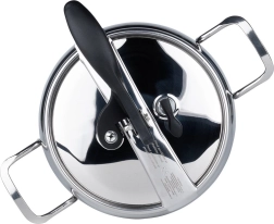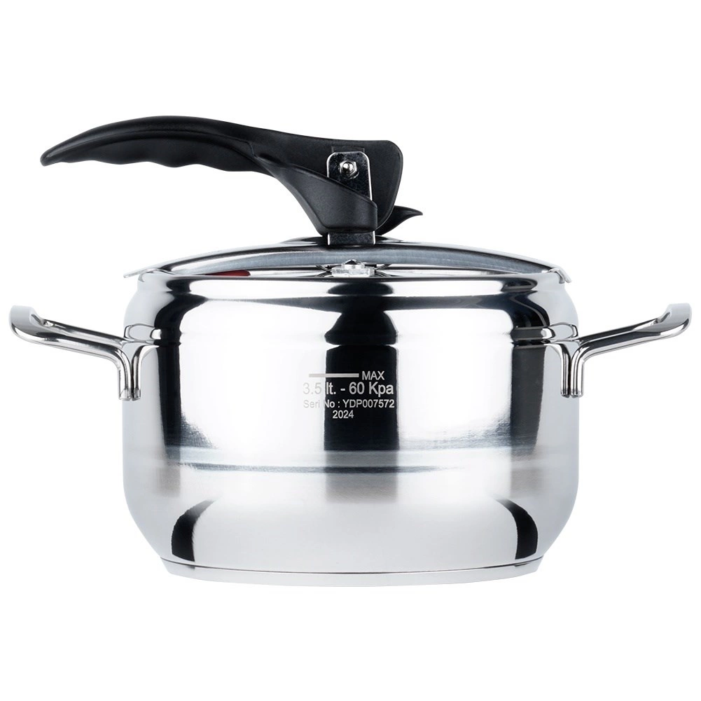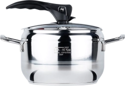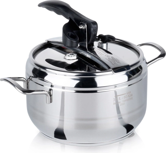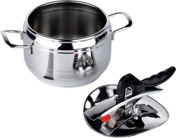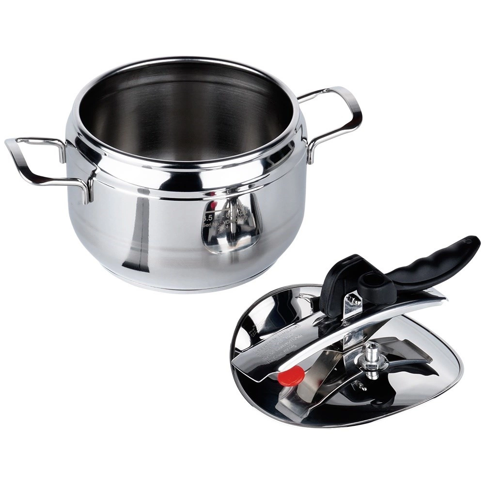 Компактна неръждаема тенджера под налягане с обем 3,5 л за бързо, икономично и здравословно готвене под налягане. Благодарение на 3-слойното дъно, регулирането на налягането и два предпазни клапана съкращава времето за приготвяне и пести енергия. Подходяща за газ, електричество, керамика, халоген и индукция и може да се мие в съдомиялна (без капака).