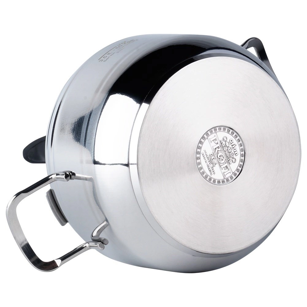 Качествена неръждаема стомана и сандвич дъно за равномерно нагряване и дълъг живот на всички видове котлони, включително индукция.