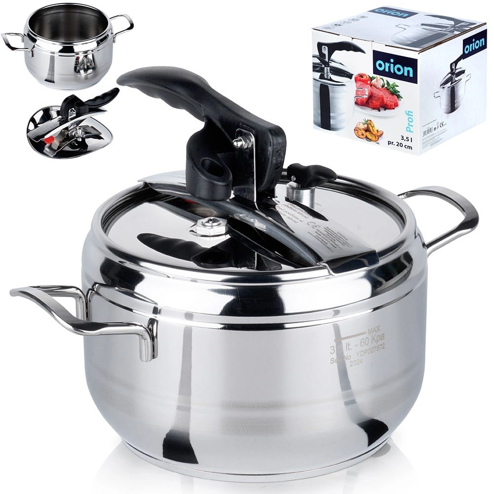Тенджерата под налягане Profi 3,5 л е надежден помощник за ежедневното готвене. Високото качество на неръждаемата стомана, здравото заключване и предпазните елементи осигуряват безопасна работа, като готвенето под налягане значително съкращава времето за приготвяне и разхода на енергия. Общият обем е 3,5 л; препоръчителният работен обем е приблизително 2/3.