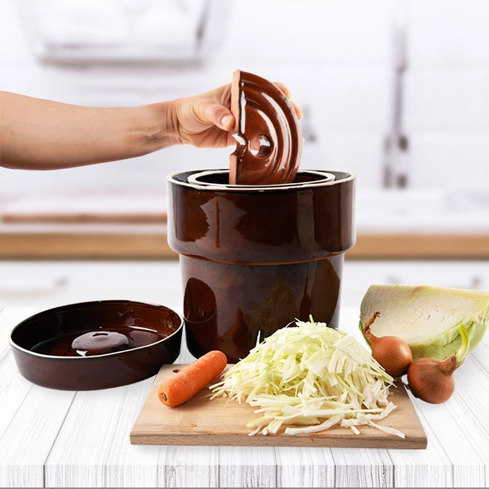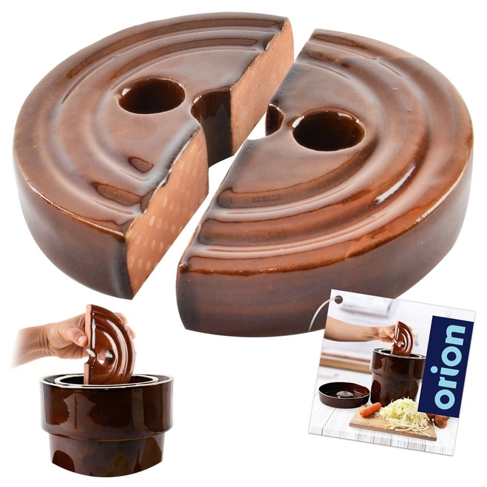 Практични керамични тежести за ферментиране с диаметър 21 см държат зеленчуците безопасно потопени под саламурата за равномерна ферментация без плесени. Здрава керамика с кафява глазура, двуделна конструкция с отвори за лесно поставяне и изваждане. Идеални за кисело зеле, краставици и друга зеленчукова ферментация в ферментационни съдове и гърнета.