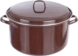 Този универсален капак е изработен от висококачествена емайлирана стомана в елегантен кафяв цвят с фин точков декор. Подходящ е за съдове с диаметър 32 см и благодарение на здравата дръжка се борави удобно с него. Емайлът е хигиеничен, безопасен за здравето и подходящ за хора с алергии.