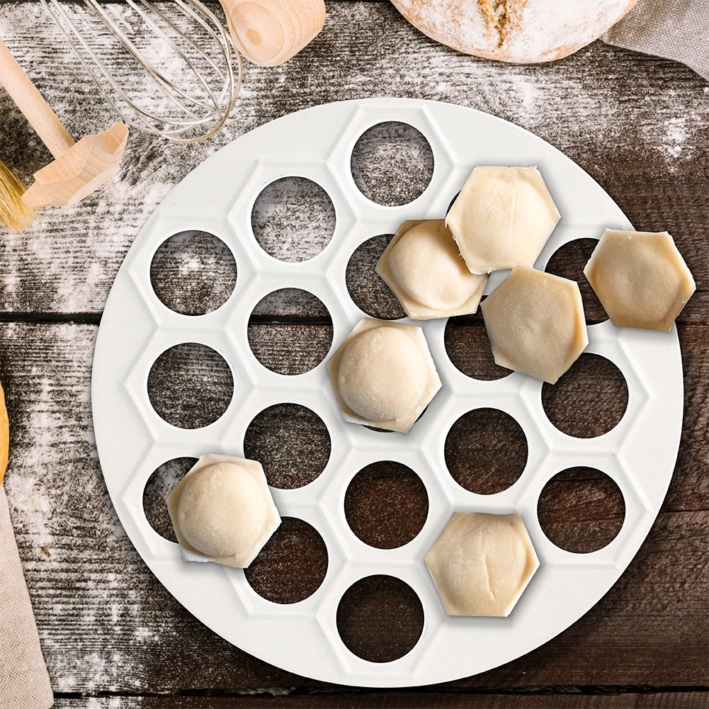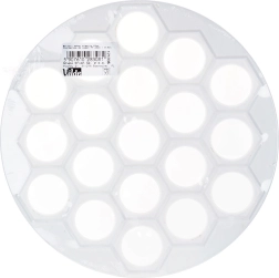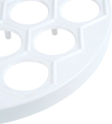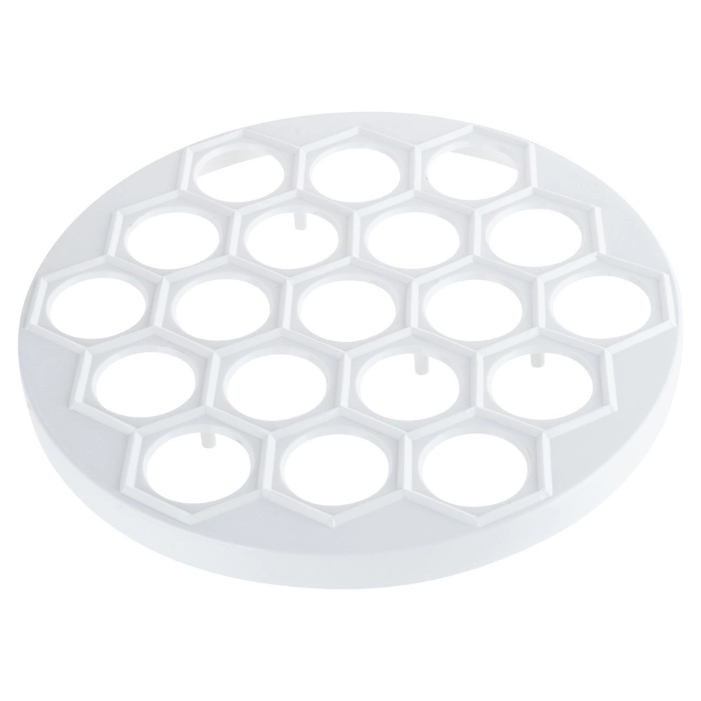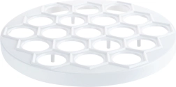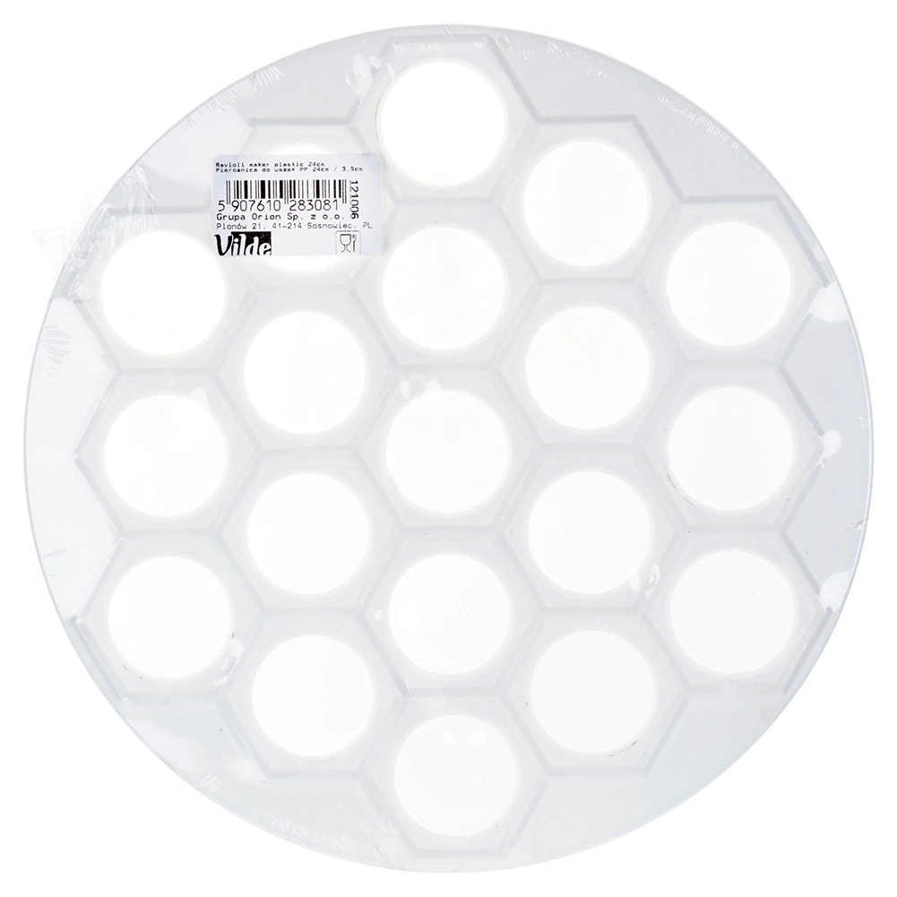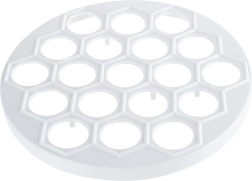 Практична форма за пелмени, равиоли и мини пирожки с диаметър 24 см за бърза подготовка на до 37 броя наведнъж. От лека и издръжлива хранителна пластмаса в бял цвят, идеална за бързо и равномерно оформяне на плънката и тестото. Отличен избор за всяка кухня и професионална гастрономия, спестява време и гарантира перфектна форма на всяко парче.
