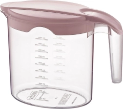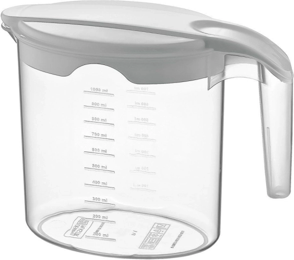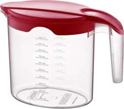 Практична пластмасова кана с обем 1 литър, идеална за ежедневното сервиране на напитки у дома и на открито. Лека, издръжлива и с удобна дръжка за лесно пренасяне. Благодарение на чучура напитката се налива безпроблемно, интегрираната мерителна скала улеснява прецизното отмерване, а затварящият се капак предпазва съдържанието от замърсявания и насекоми. Отлична за вода, лимонада, сокове и компоти.