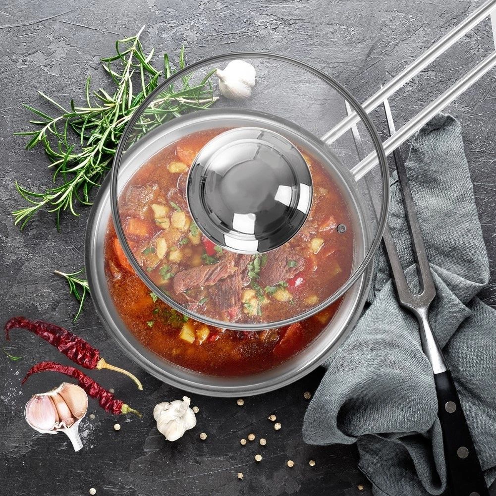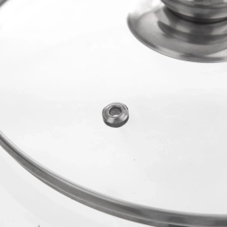 Интегрираният вентилационен отвор отвежда излишната пара и минимизира преливането. Благодарение на леко куполовидната форма по-добре циркулира горещият въздух, което ускорява приготвянето на храната. Неплъзгащият се неръждаем ръб помага за надеждно прилягане към съда и комфортна употреба.