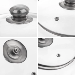 Вграденият отдушник помага да се отвежда излишната пара и предотвратява прекомерното кипене. Леко изпъкналият профил подпомага ефективната циркулация на топлината, така че храната се готви по-равномерно и по-бързо. Плътният ръб предотвратява хлъзгане и ограничава пръските вода и мазнина около котлона.
