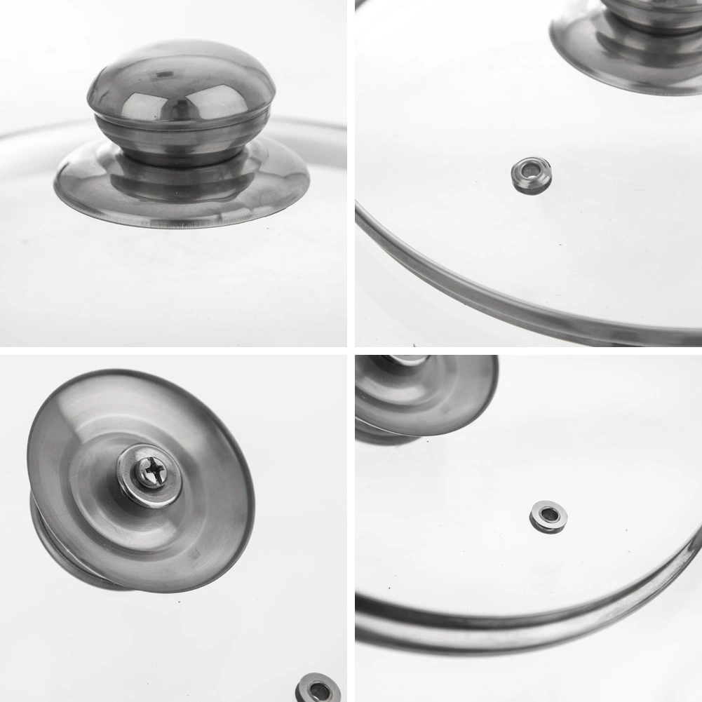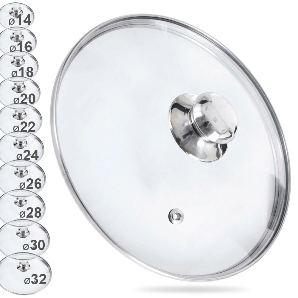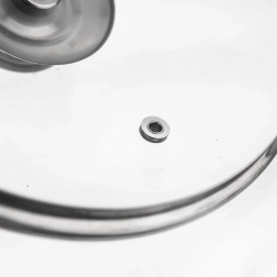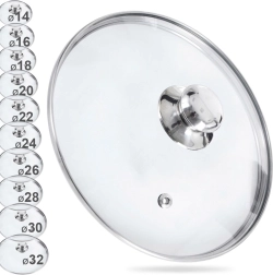 Универсален стъклен капак с диаметър 28 см със здрав неръждаем кант, удобна метална дръжка и парен вентил. Топлоустойчивото стъкло позволява наблюдение на готвенето без повдигане, леко изпъкналата форма подпомага циркулацията на горещия въздух, а плътното прилягане намалява изтичането на пара и пръските. Подходящ за тенджери, тигани и касероли.
