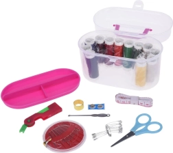 Комплектът за шиене в компактен, затварящ се органайзер е отличен помощник за ежедневни ремонти и дребни корекции на облеклото. Благодарение на издръжливите и еластични конци лесно ще скъсите крачоли, ще зашиете скъсан шев или ще замените липсващо копче. Прозрачният бокс държи всички принадлежности подредени на едно място и благодарение на ниското тегло можете да го вземете навсякъде.