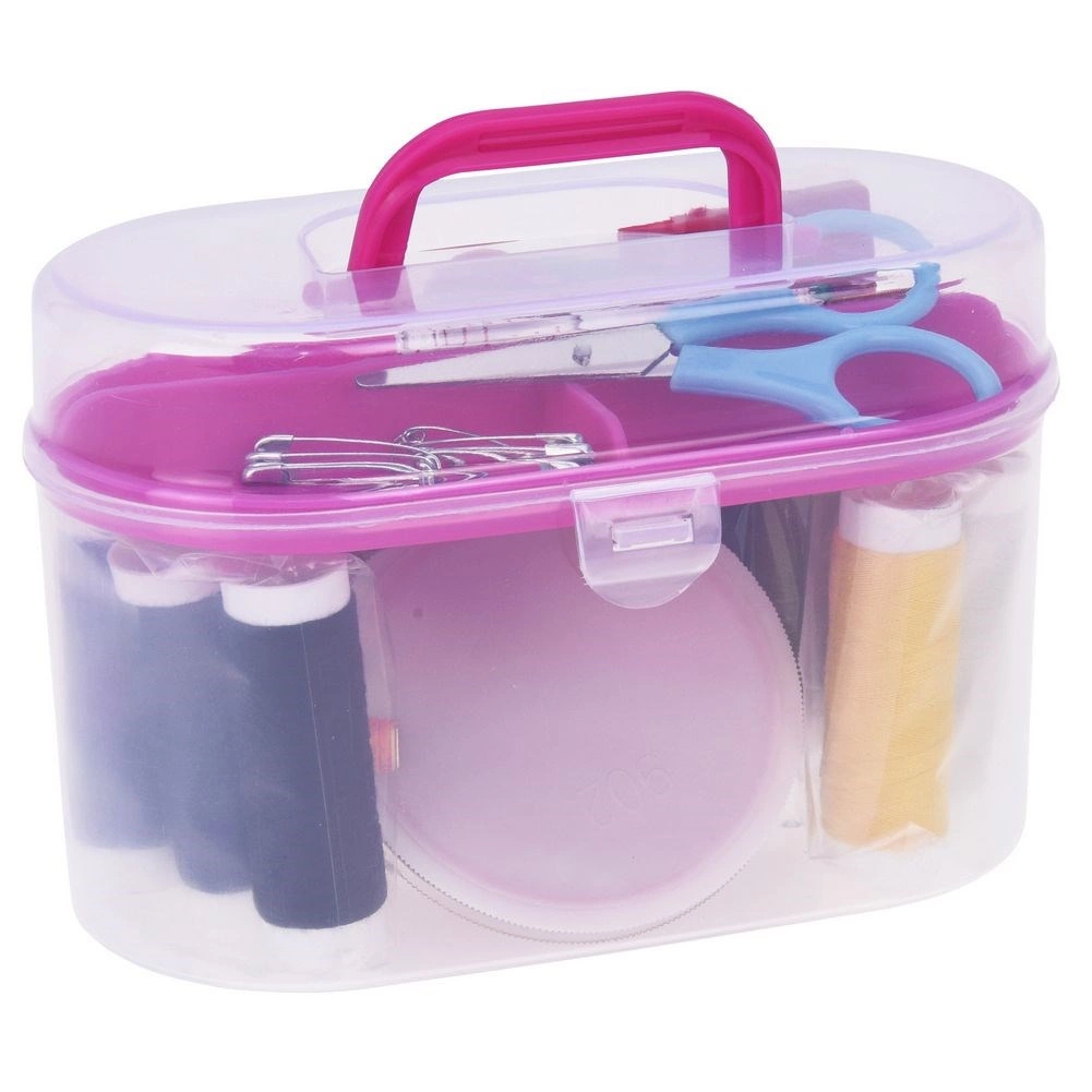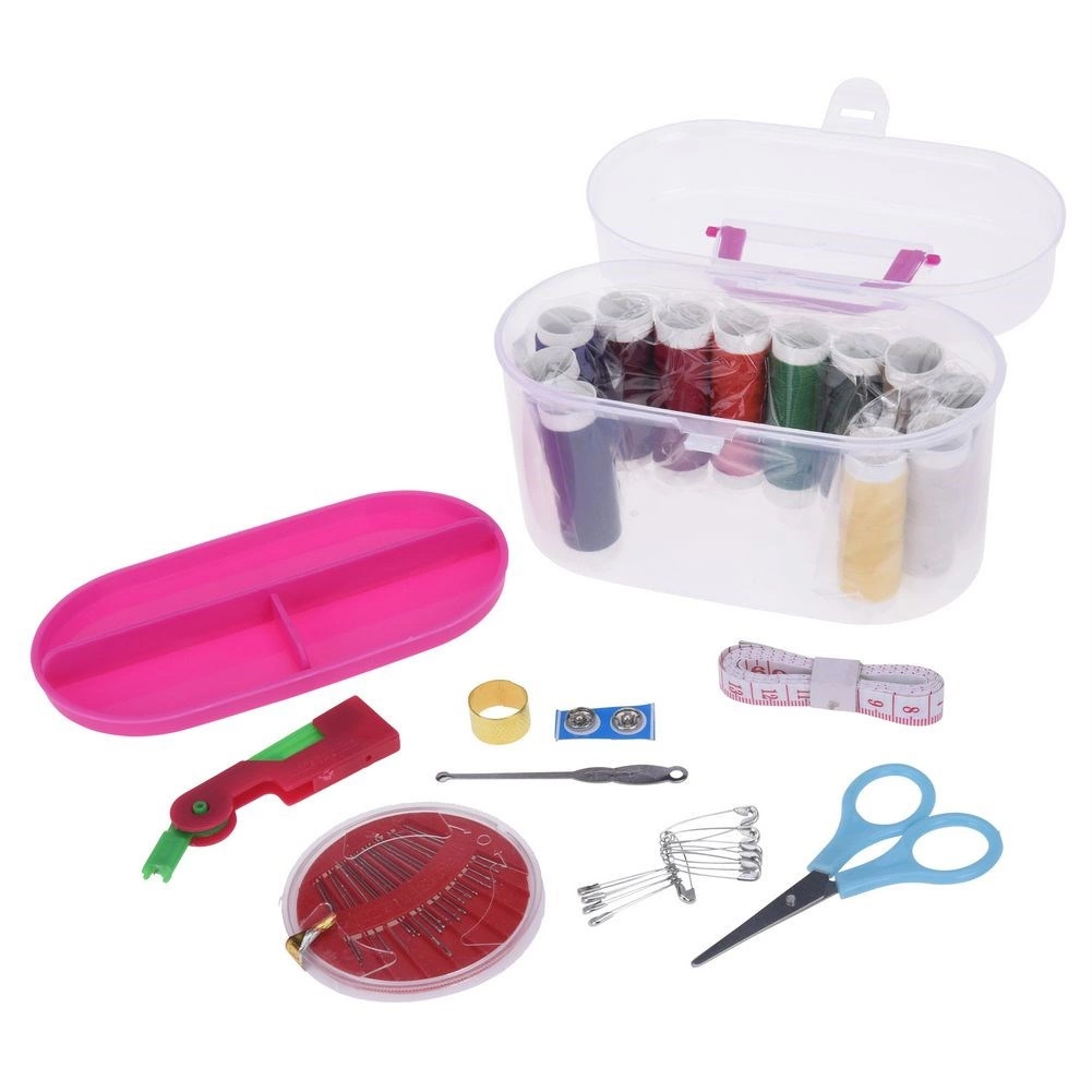 Практичен комплект за шиене с 50 части в преносим органайзер. Съдържа цветни конци, игли, малки ножички, шивашки метър, копчета, напръстник, вдявач и безопасни игли. Лекият, прозрачен бокс с щипка е идеален за пътуване и за домашни ремонти. Издръжливите и еластични конци улесняват бързото зашиване и корекции на дрехи.