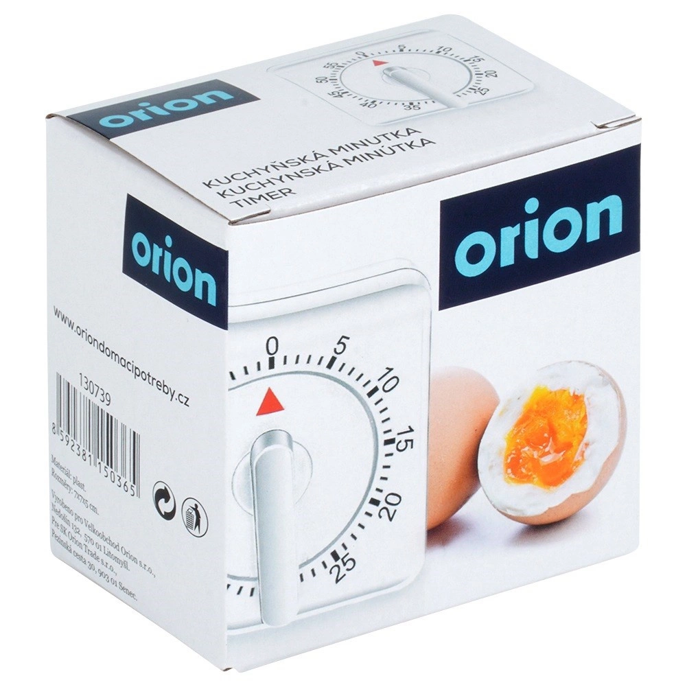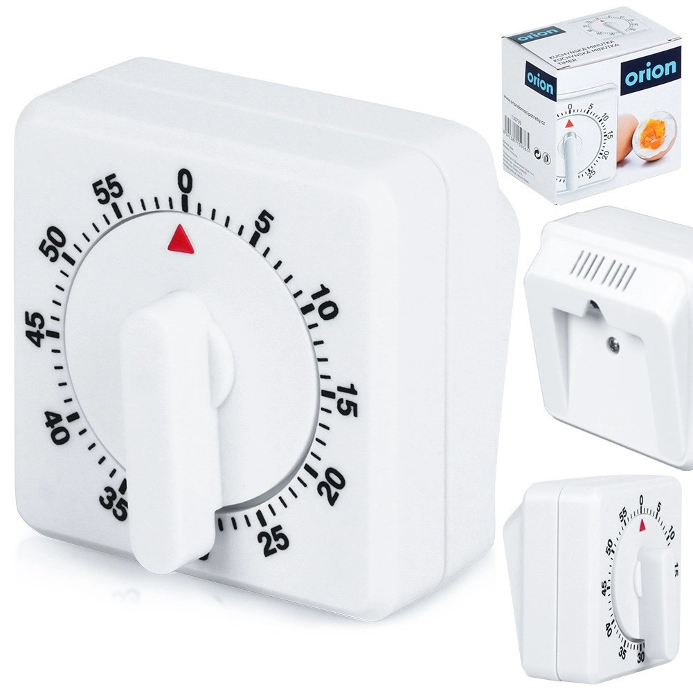 Практичният кухненски таймер ORION в механичен вариант следи времето за готвене, печене и втасване на тесто. Настройвате го за секунда, а след изтичане на времето ви известява с ясен акустичен сигнал. Благодарение на обхвата 0–60 минути е идеален за яйца, паста, блатове за торти и ежедневни кухненски задачи.