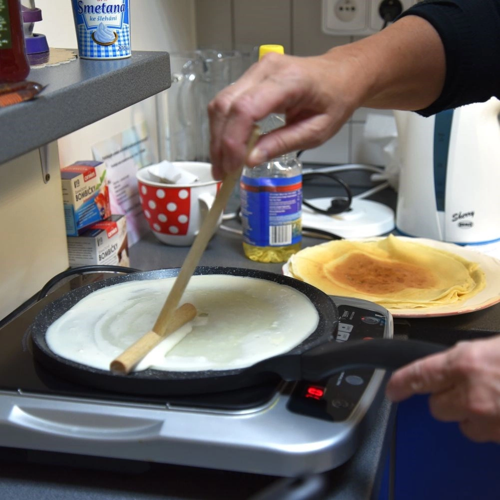 - Равномерно разнасяне на тестото за перфектно тънки палачинки