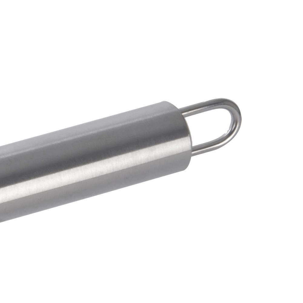 Изработена от висококачествена неръждаема стомана, тя е безопасна за контакт с храни, устойчива на корозия и подходяща за съдомиялна. Практичната халка позволява окачване на релса и бъркалката да е винаги под ръка.