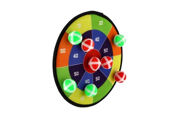 Играта включва 8 топчета с велкро, които сигурно прилепват към мишената, като по този начин се минимизира необходимостта от надзор за безопасност. Мишената е оборудвана с халка за лесно окачване в стаята.
