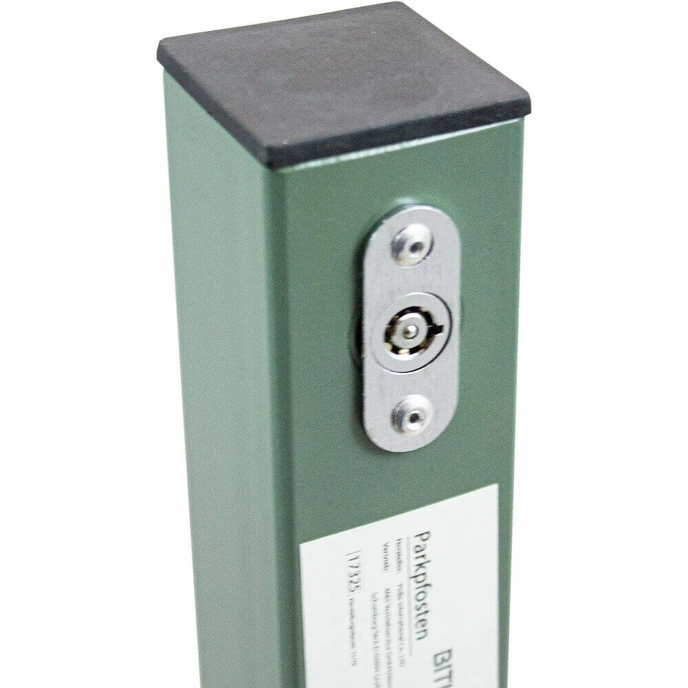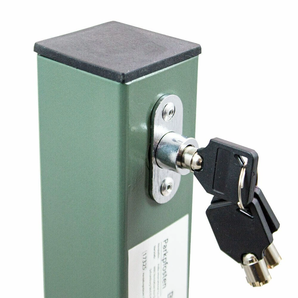 С интегриран цилиндричен заключващ механизъм колът лесно се отключва и сгъва, за да не пречи на достъпа на оторизирани потребители. Прахово боядисаната стомана е защитена от корозия и UV лъчи, което позволява целогодишна експлоатация. Монтажът е лесен – анкериращият материал е включен в комплекта.