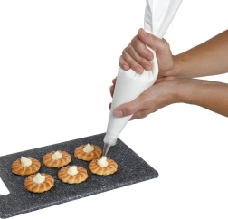 Сладкарски пош от качествен бял памук с вътрешно гумено покритие, идеален за работа с гъсти кремове и по-течни пълнежи. Перфектен за декориране на торти, къпкейкове, бисквити и солени снаксове. Благодарение на еластичността на материала манипулацията е удобна и прецизна, осигурявайки професионални резултати дори в домашната кухня.