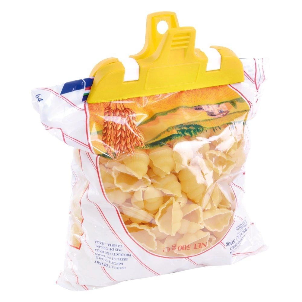 Комплектът от 3 щипки за затваряне на пликове е незаменим помощник за всяка кухня и килер. Жълтите щипки са изработени от качествена, устойчива пластмаса и благодарение на компактните размери (7,5 × 4 × 4 cm) са удобни за употреба и съхранение. Помагат да поддържате ред, предотвратяват изсипване на съдържанието и защитават храните от овлажняване.
