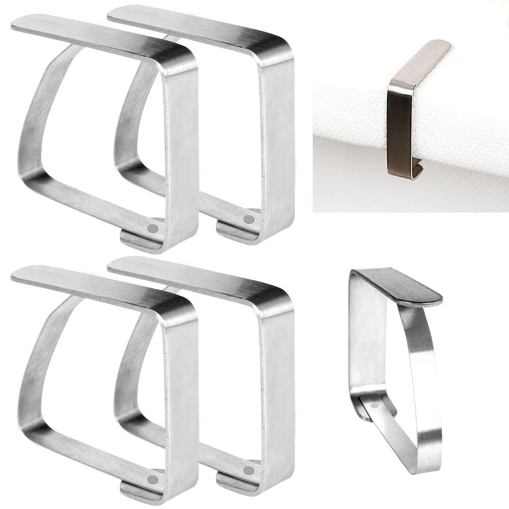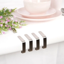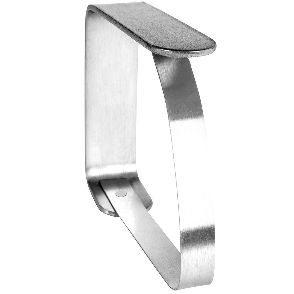 Практичен комплект от 4 неръждаеми щипки за покривка, които държат текстилни и еднократни покривки здраво на място у дома, на терасата и в градината. Щипките от издръжлива неръждаема стомана са леки, здрави и лесни за поставяне и сваляне. Автоматично се адаптират към дебелината на плота и са идеални дори при ветровито време, за да не се плъзга и набръчква покривката.