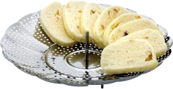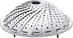 Сгъваемият паравен кош от висококачествена неръждаема стомана позволява щадящо готвене на пара, при което храните запазват своята вкус, цвят и хранителни вещества. Регулируемият диаметър 14–23 см осигурява съвместимост с тенджери с различни размери, така че ще приготвите всичко – от зеленчуци и риба до кнедли.