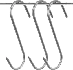 Практичен комплект от три S-образни куки за пушилня за лесно окачване на месо, наденици и риба. Изработени от висококачествена неръждаема стомана, те са устойчиви на високи температури, имат остри върхове за лесно набождане и осигуряват равномерно опушване благодарение на свободната циркулация на дима.
