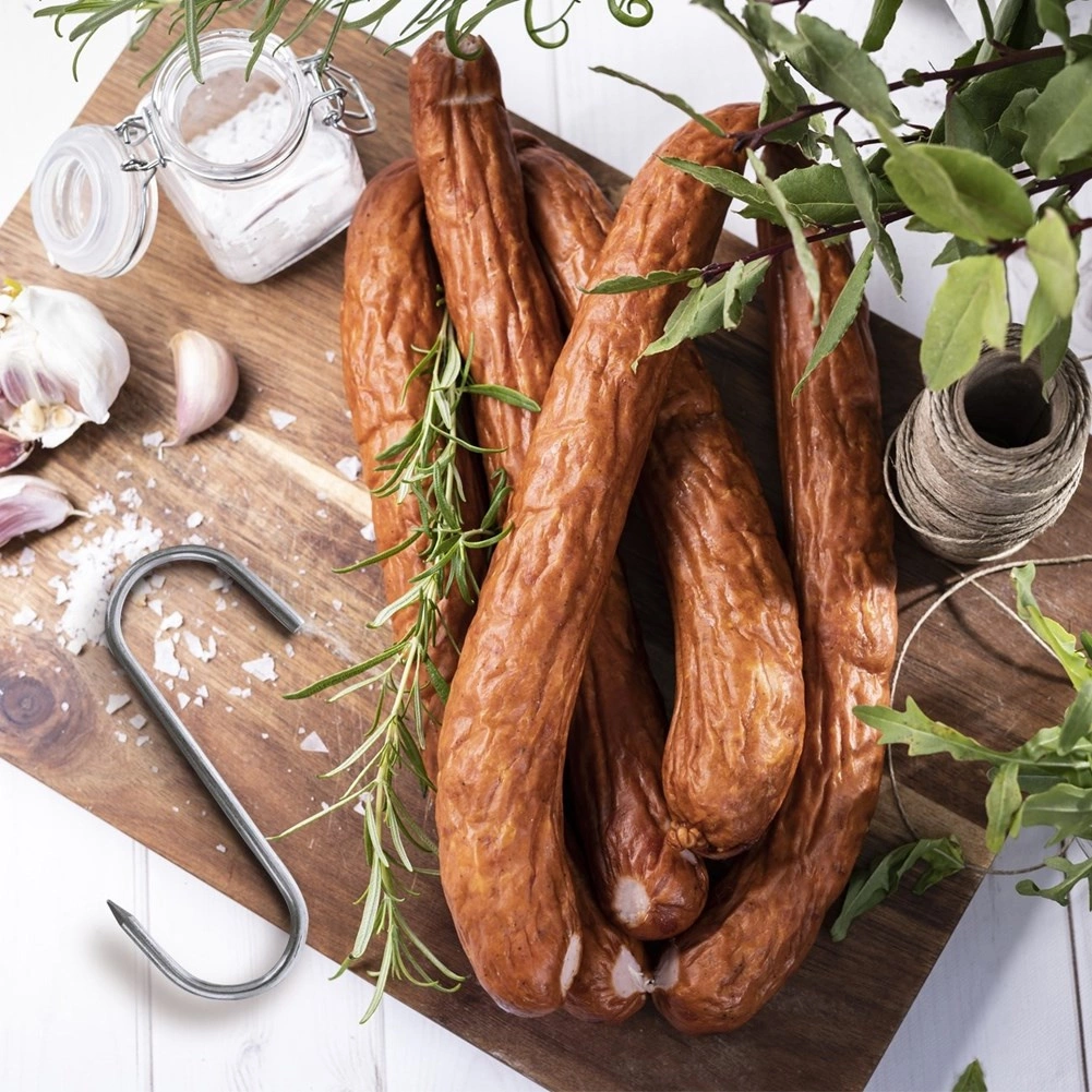 Едностранно заостреното окончание улеснява проникването в месото и гарантира безопасно и стабилно окачване на пръчките в пушилнята.