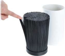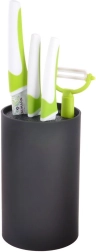 Компактната цилиндрична форма в черен цвят пести място на плота, държи инструментите във вертикално положение и се вписва отлично както в модерна, така и в класическа кухня.