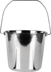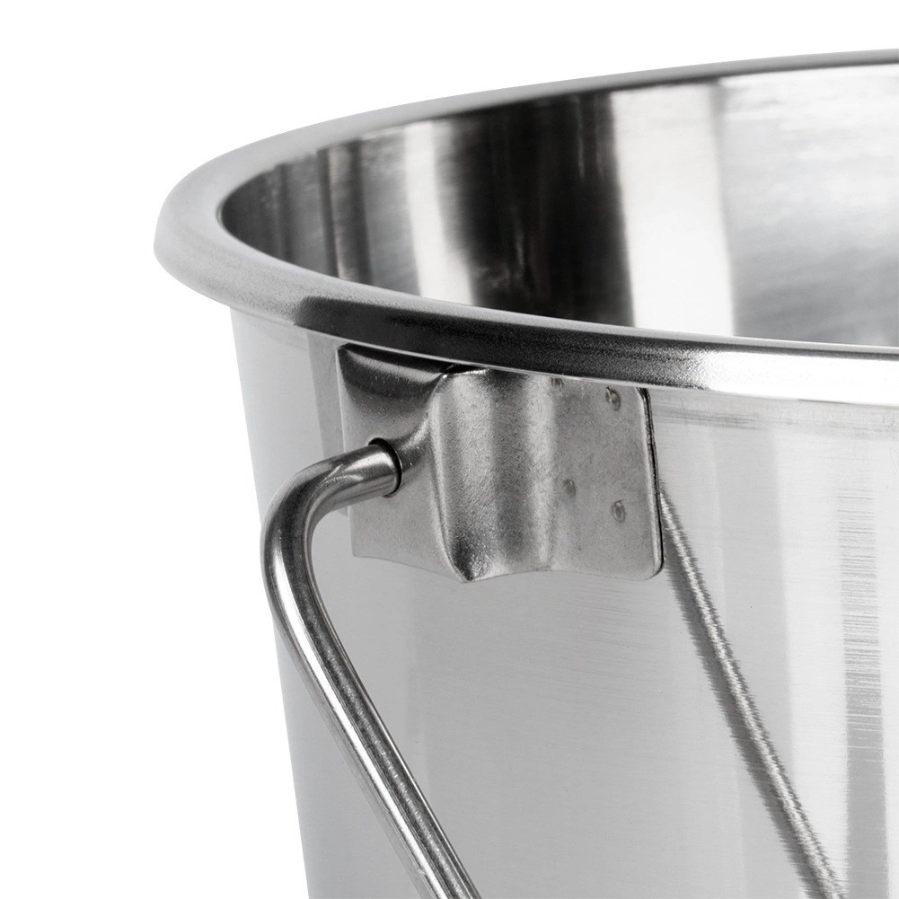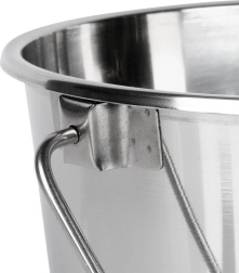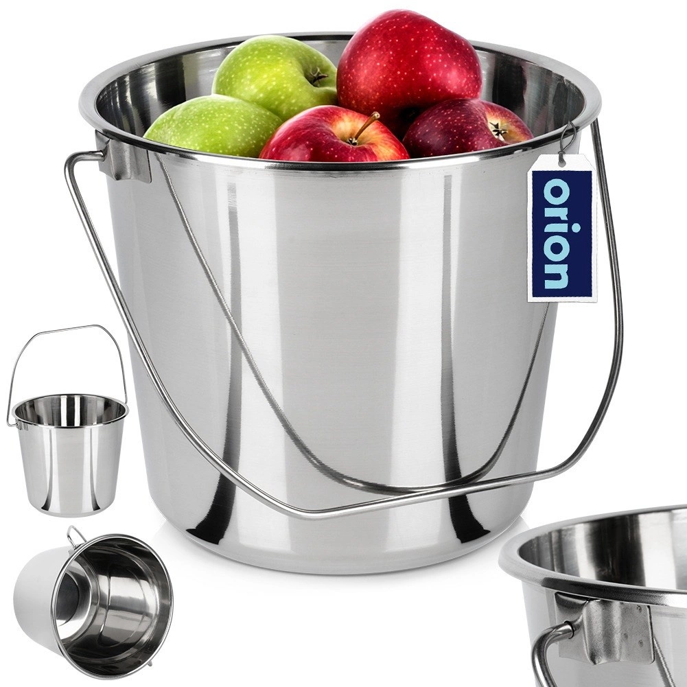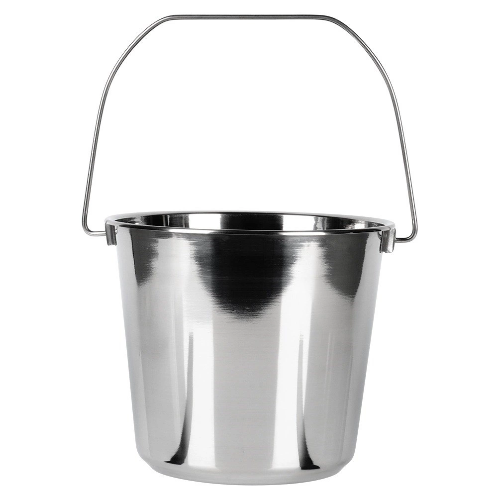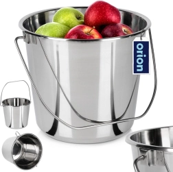 Практичната неръждаема кофа с обем 8 л е подходяща за контакт с храни и се отличава с дълъг живот. Гладката, лесна за измиване повърхност и здравото телено ухо осигуряват удобно ползване у дома, в гастрономията и в градината.
