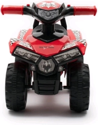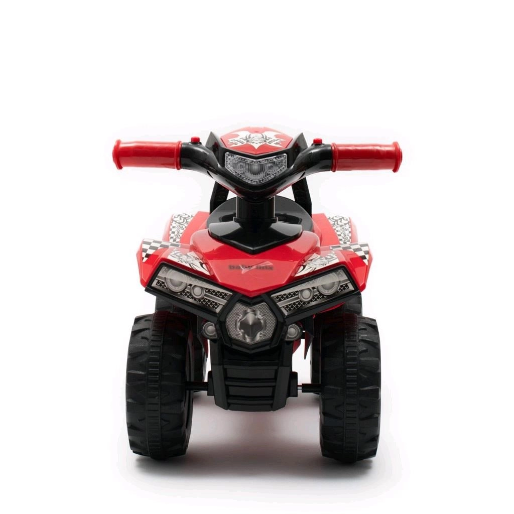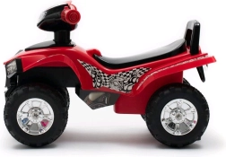 Тази детска проходилка-четириколка в атрактивен син цвят носи много забавление и увереност при първите карания. Стабилното четириколесно шаси, широкото кормило и удобната седалка осигуряват безопасно возене у дома и навън. Звуковите ефекти с три мелодии, клаксон и мигащи светлини на кормилото стимулират въображението и учат децата на връзката между натискането на бутон и реакцията.