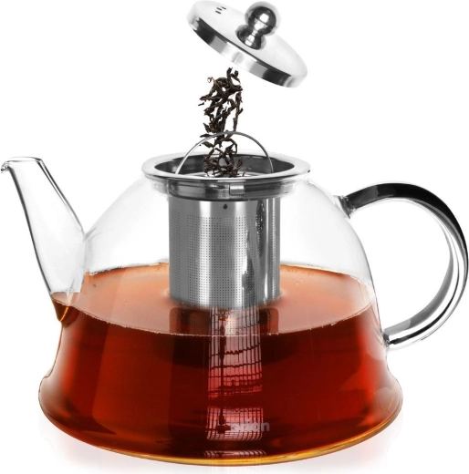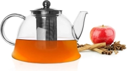 Тази модерна стъклена кана улеснява приготвянето на любимите черни, зелени и ароматизирани чайове и билкови настойки. Боросиликатното стъкло е леко, здраво и устойчиво на термични шокове в диапазона от -20 °C до +180 °C (затопляйте постепенно). Подвижното фино неръжимо сито задържа листата и дребните билки извън чашата, за да се насладите на чиста напитка.
