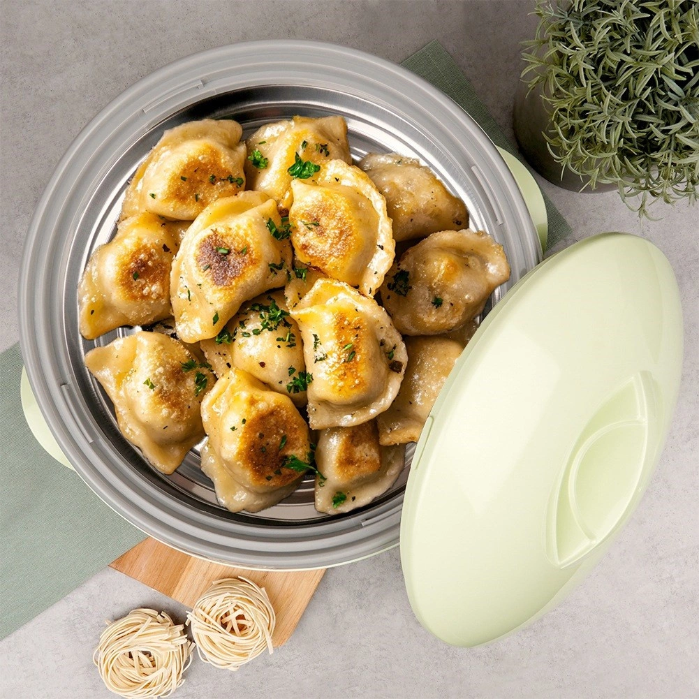 Благодарение на изолационната конструкция храната остава топла по-дълго – идеално за супи, сосове и основни ястия при семейно сервиране.