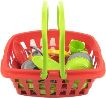 Комплектът за готвене с пластмаска кошница за пазаруване е идеален за детска игра на готвене и пазаруване. Цветното изпълнение и богатото оборудване гарантират часове забавление. Подходящо за деца от 3 години.