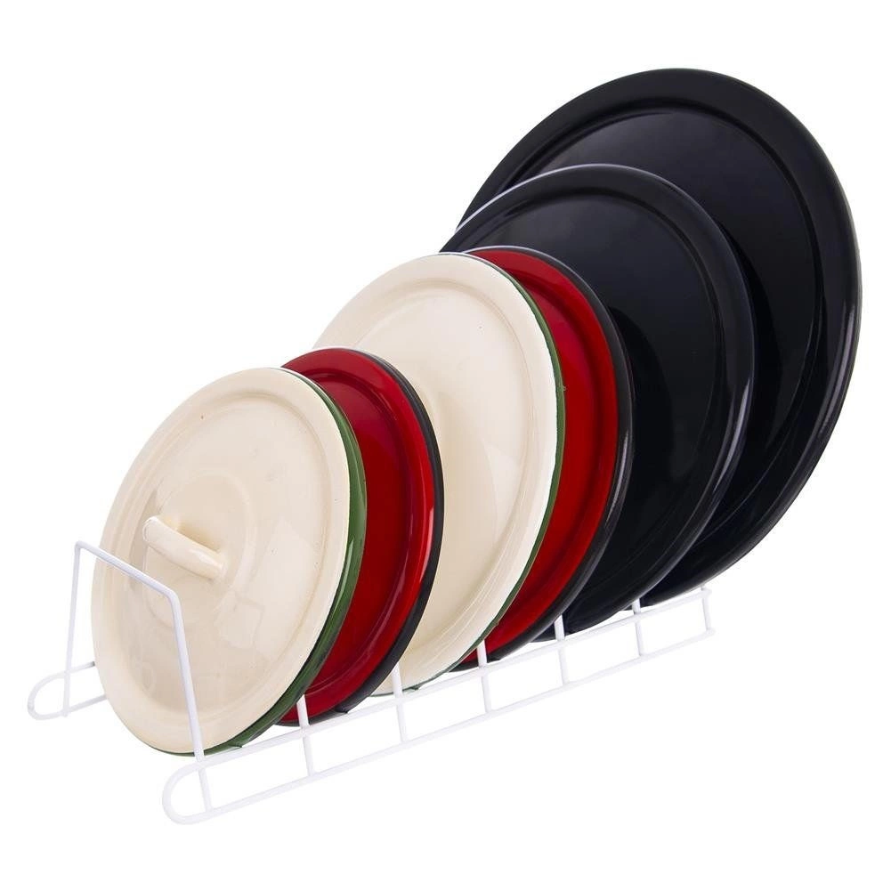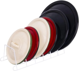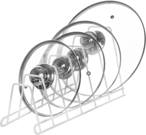 - Спестяване на място: вертикалното съхранение на капаци и чинии освобождава място по рафтовете.