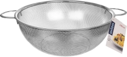 Този просторен гевгир ANETT от неръждаема стомана се отличава с фина мрежа, която ефективно задържа храните и същевременно бързо отвежда водата. Благодарение на двете удобни дръжки и крачетата за стабилно поставяне, работата е безопасна и лесна. Щедрите размери 36 × 28,5 × 11 см позволяват комфортно прецеждане и на по-големи количества продукти наведнъж.