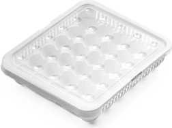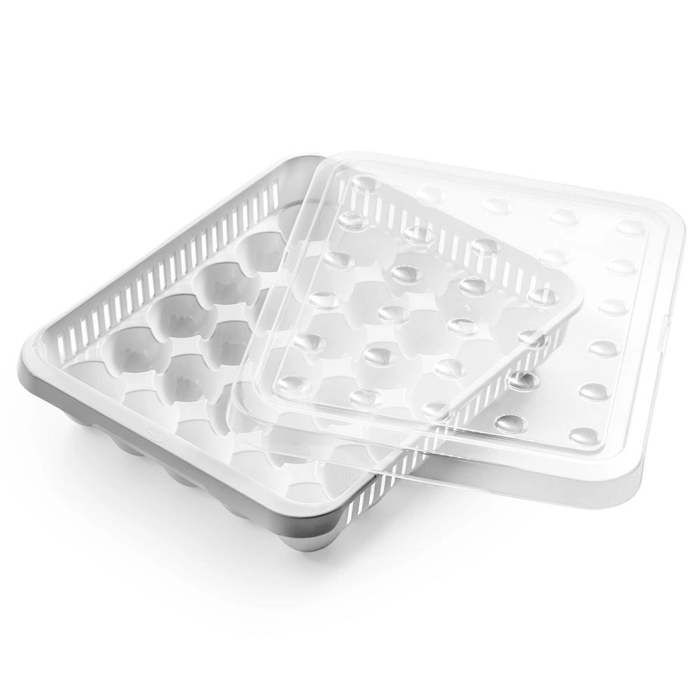Поддържайте яйцата подредени и безопасно съхранени. Тази просторна кутия побира до 30 яйца, има прозрачен капак за бърза проверка на наличностите и оформени гнезда, които държат всяко яйце на място. Благодарение на компактните размери 33 × 27 × 7 cm лесно се побира на повечето рафтове в хладилника и може удобно да се подрежда.