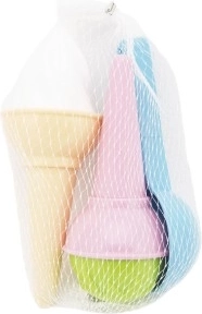 Този забавен комплект за пясък позволява на децата да приготвят „сладоледени“ лакомства за приятели и семейство. Благодарение на леките и приятно оцветени елементи децата се учат да си сътрудничат, развиват фината моторика и се забавляват много в ролеви игри като кафене, ресторант или магазин.