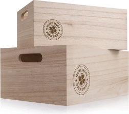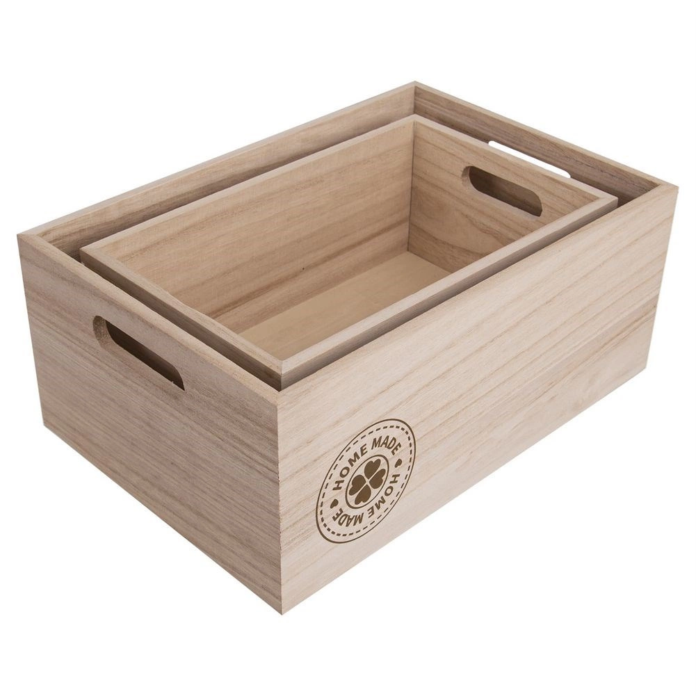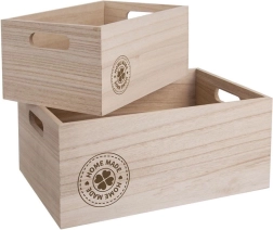 Дървената кутия за съхранение Home Made е изработена от естествено дърво и се отличава с издръжливост и непреходна визия. Благодарение на практичните размери 31 × 21 × 13 cm лесно я поставяте на рафт, скрин или работно бюро. Страничните дръжки позволяват удобно пренасяне дори с съдържание.