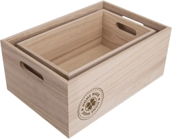 Практична дървена кутия за подредено съхранение на дреболии, козметика, храни или канцеларски материали. Има размери 31 × 21 × 13 cm, здрава конструкция и странични дръжки за лесно пренасяне. Чудесно пасва в кухнята, хола и офиса и служи и като стилна декорация. Естествено дърво, многофункционално приложение, странични дръжки, издръжливо изпълнение.