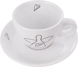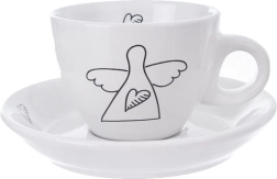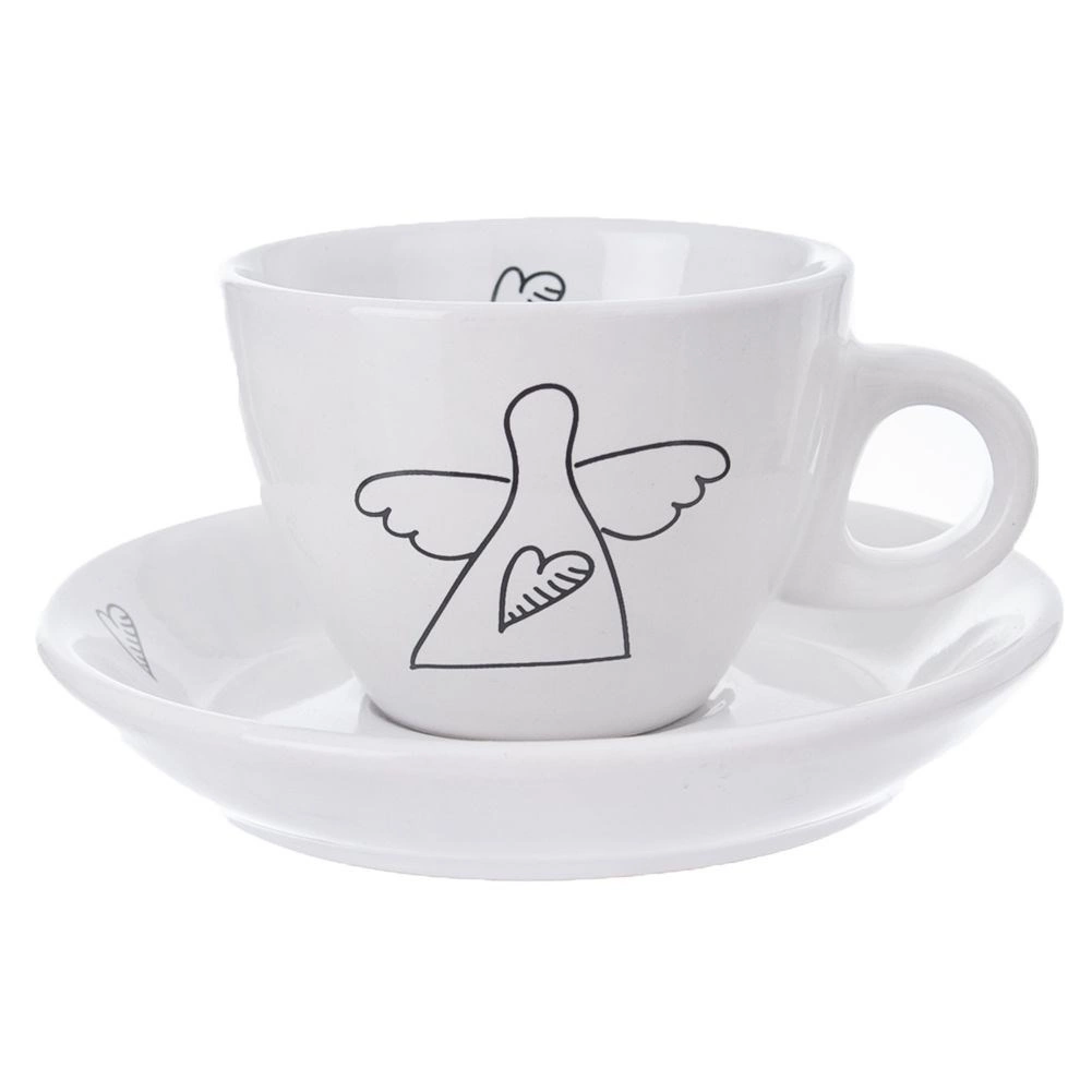 Открийте стилни и практични чашки за еспресо, които ще разкрасят всяка маса. Минималистичният бял дизайн с черна линейна рисунка на ангел и сърце добавя фина елегантност към вашия кафен ритуал. Всяка чашка има ергономична дръжка, а чинийката улавя капките и побира лъжичка или малък десерт.