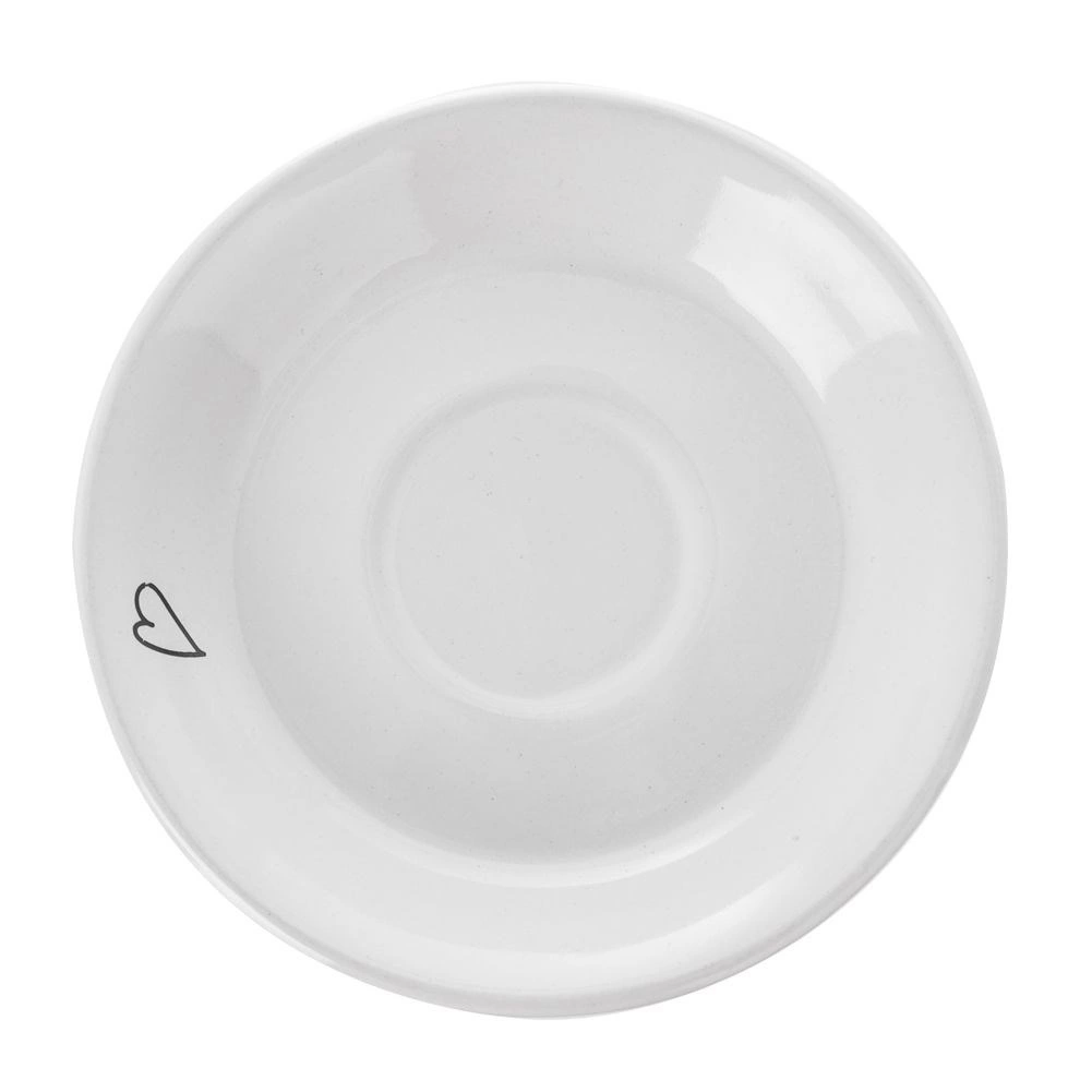 Бяла керамика с фина черна линейна рисунка на ангел и сърца придава елегантност и оригиналност на вашата маса.