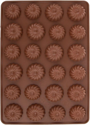 Открийте удобното печене с кафявата силиконова форма Sillinie. Благодарение на 24-те кухини във формата на цветя ще приготвите бисквити, бонбони пралин и шоколадчета с малко кладенче, идеално за мармалад или крем. Формата е лека и гъвкава, не абсорбира миризми или вкусове и осигурява лесно отделяне без необходимост от намазняване.