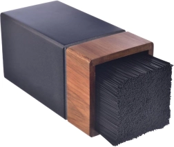 Поставката за ножове WOODEN комбинира здраво акациево дърво с устойчивa пластмаса в елегантно черно. Универсалната вложка от пластмасови влакна позволява поставяне на ножове с всякаква форма и размер без риск от повреда. Благодарение на компактните размери 11 × 10,5 × 22,5 cm се побира на всеки кухненски плот и осигурява безопасно и подредено съхранение.