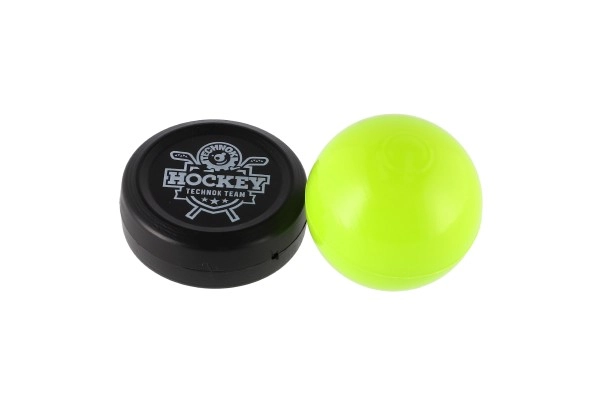 В комплекта ще откриете пластмасова стика, шайба и топче за пълно хокейно изживяване.
