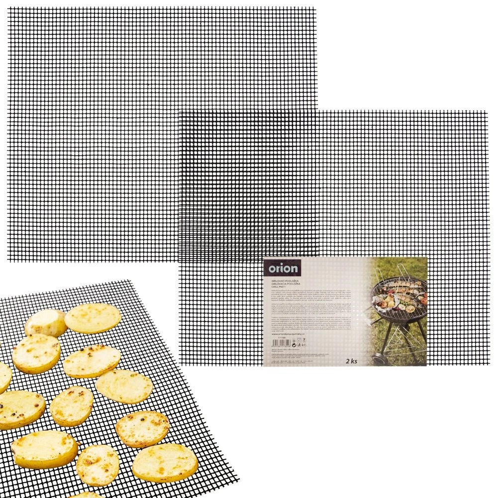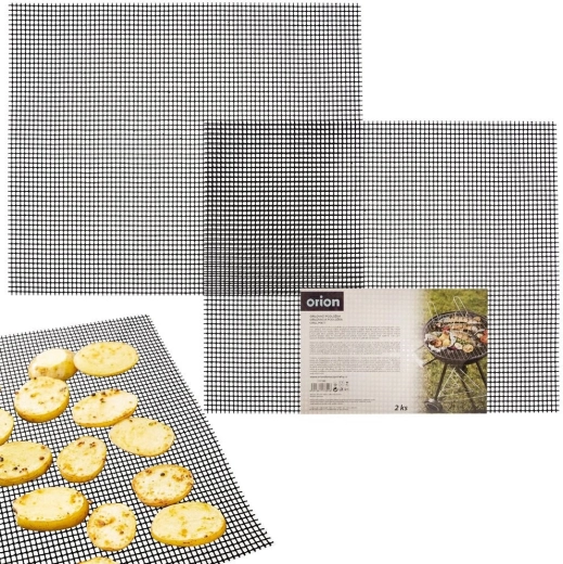 Практична тефлонова мрежеста подложка за грил с размери 40 × 33 см в изгоден комплект от 2 броя. Многократна употреба, нелепнеща, устойчива до 260 °C и подходяща за съдомиялна. Позволява гриловане и на дребни парчета месо, зеленчуци или морски дарове, които иначе падат през скарата, и гарантира, че храната ще се грилира, а не да се задушава.