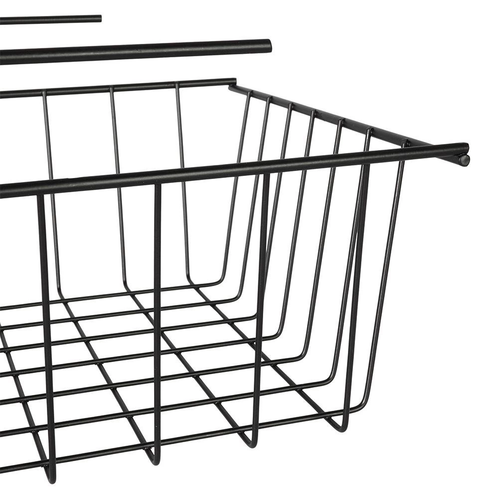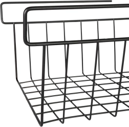 Организирайте кухнята, банята, гардероба и офиса с тази окачена кошница под рафт. Металната конструкция в индустриален loft стил е здрава и издръжлива, а отворените телени стени гарантират отличен преглед на съдържанието и циркулация на въздуха. Без пробиване и без инструменти: достатъчно е кошницата просто да се плъзне върху ръба на рафта и веднага да използвате неизползваното пространство под него.