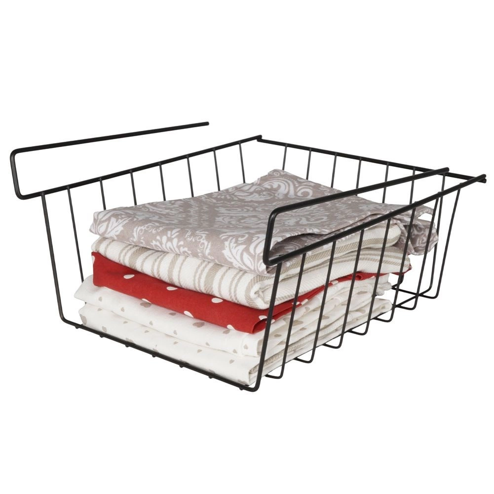Издръжливият черен метал издържа на ежедневна употреба, а телените стени осигуряват отлична видимост и циркулация на въздуха за сухо и чисто съхранение.