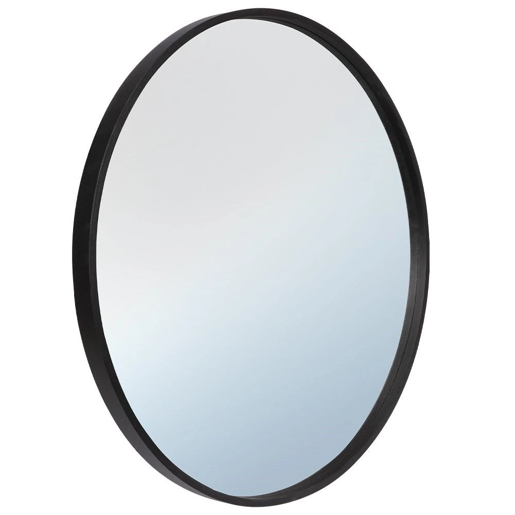Кръглата форма и тънката черна рамка създават модерен акцент, който оптически увеличава и озарява помещението.