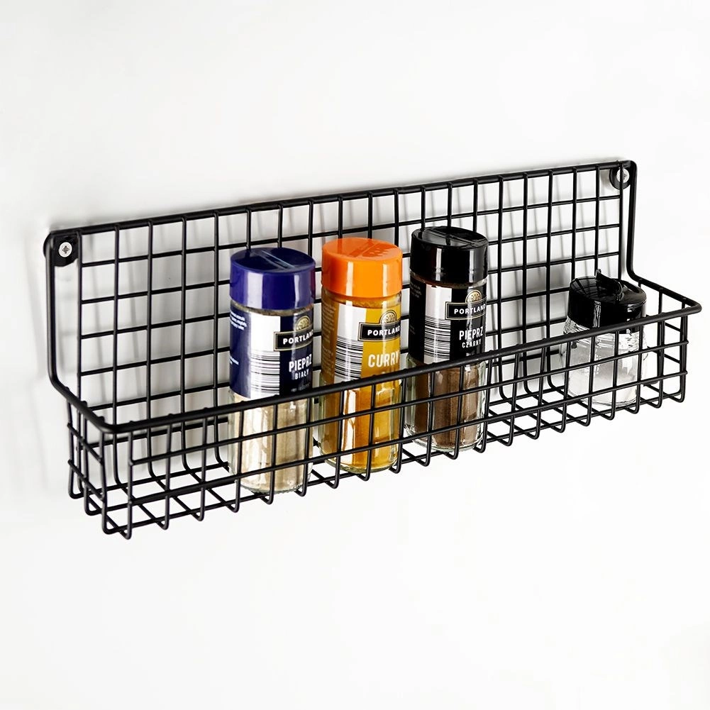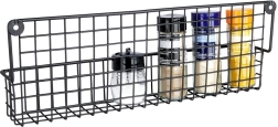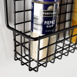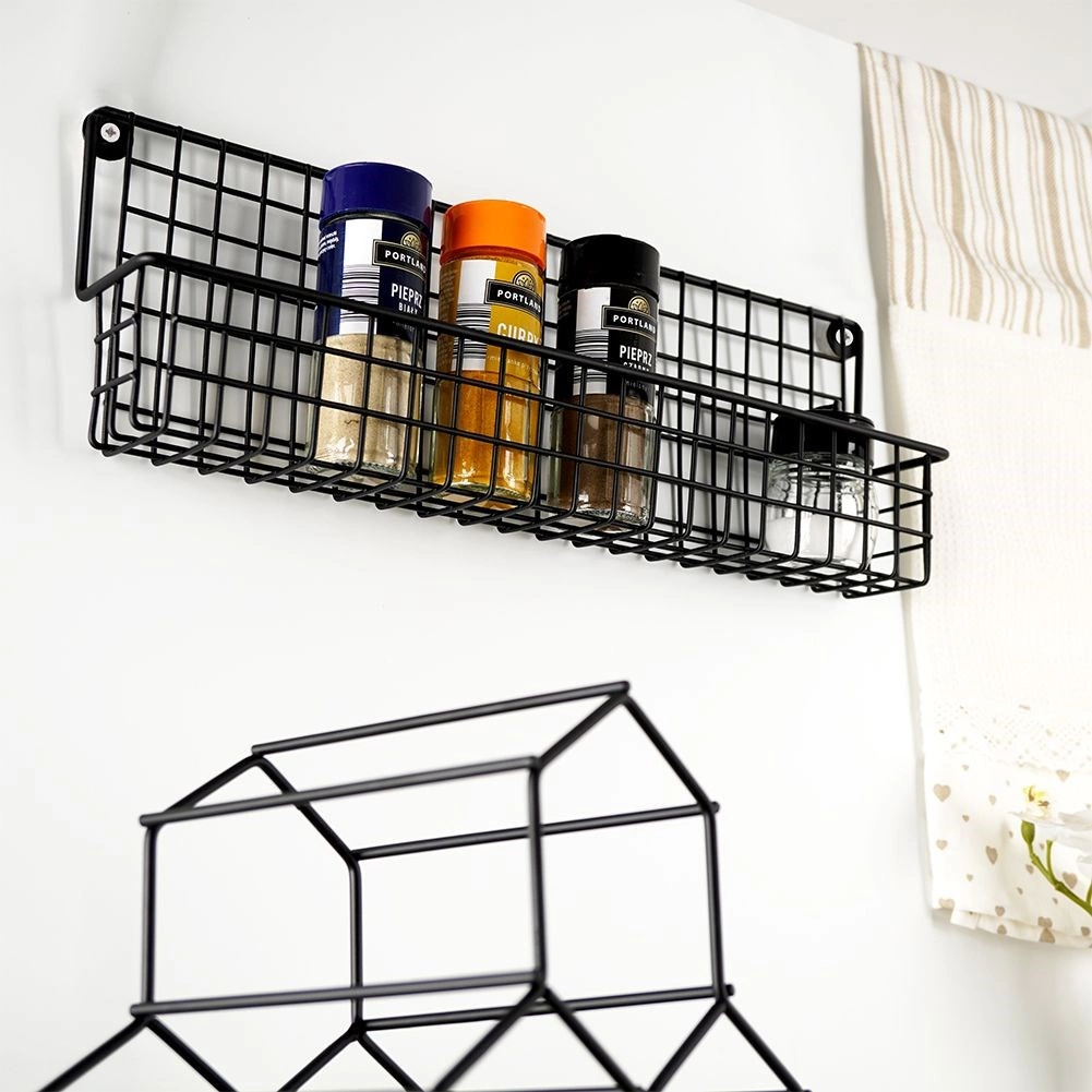 Устойчив черен метал с телена кошница държи подправките и малките шишенца сигурно на място и улеснява подреденото им съхранение.