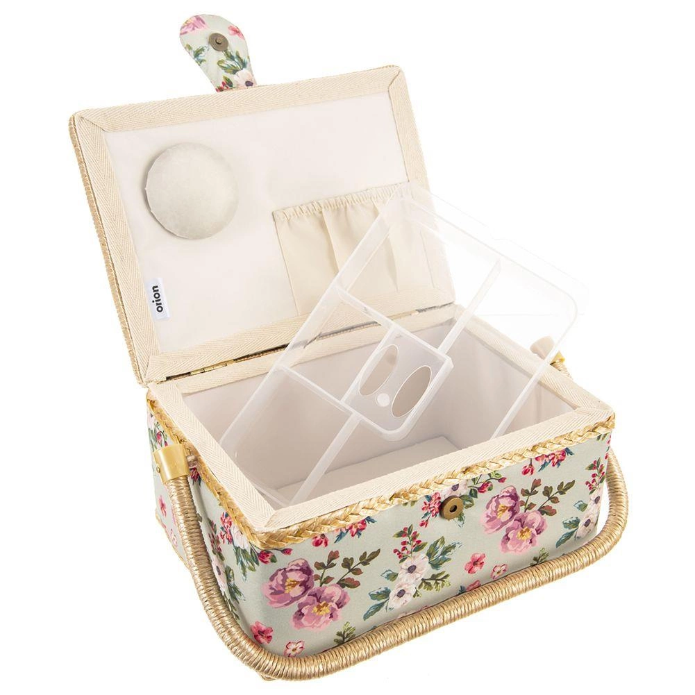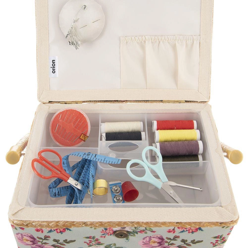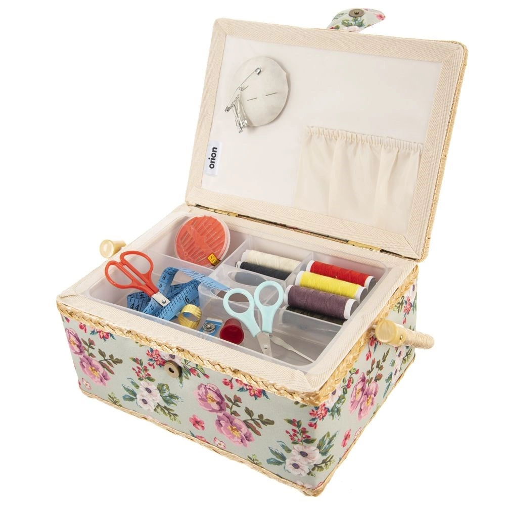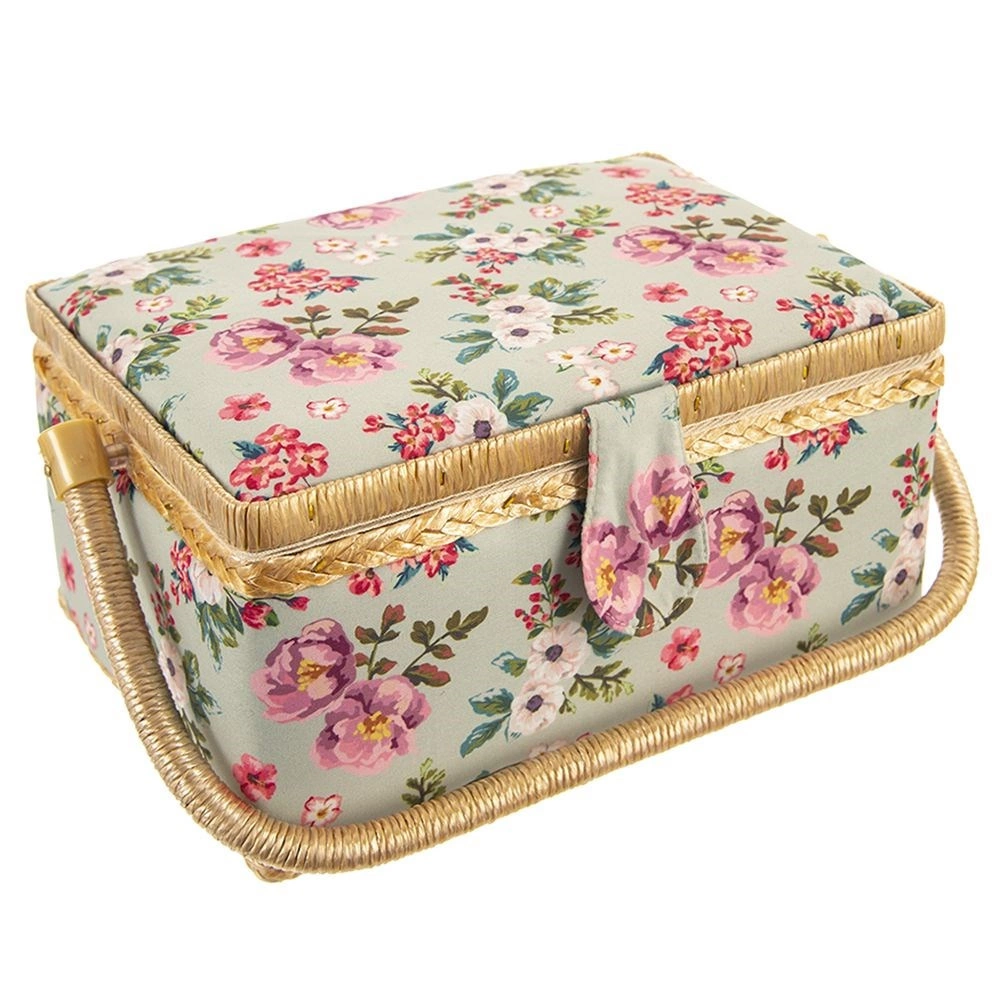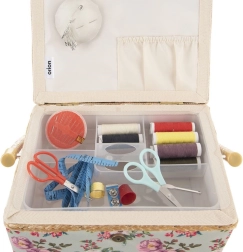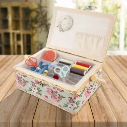 Тази стилна кутия за шевни принадлежности е идеалното решение за всеки, който иска шивашките неща винаги под ръка и перфектно организирани. Благодарение на флоралния мотив и здравата изработка изглежда декоративно и в същото време е максимално функционална. Подходяща е и като органайзер за бижута и дребни творчески материали.