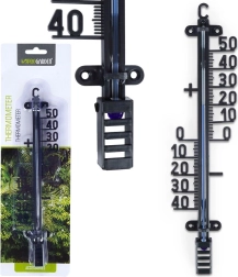 Стилен термометър в класически дизайн, който надеждно измерва околна температура както на закрито, така и на открито. Големите цифри и отчетливите деления осигуряват отлична четливост дори от по-голямо разстояние. Благодарение на компактните размери 6 × 2,5 × 25 см е подходящ за стена на къща, пергола, балкон или коридор.