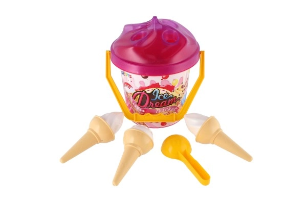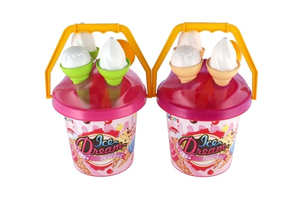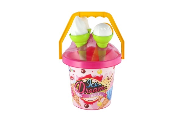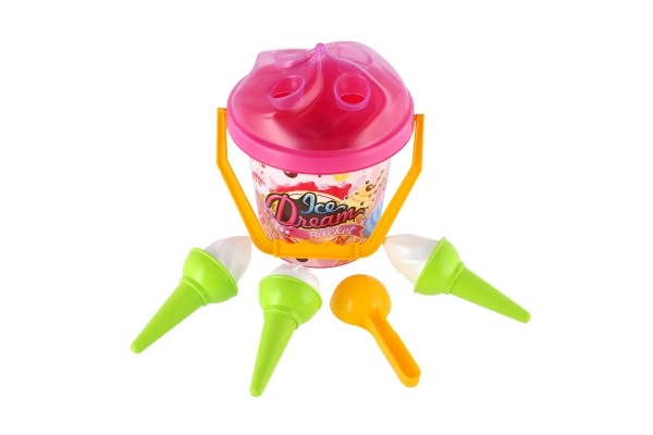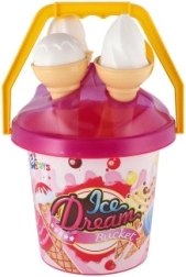 Очарователният комплект за пясък „Ice Dream Bucket“ превръща всяка пясъчник или плаж в малка сладкарница за сладолед. Децата ще се забавляват с креативна игра на сладолед, ще загребват пясък със сладоледена лопатка и ще правят топки в фунийки. Лека, цветна и безопасна играчка с CE сертификат, идеална за деца от 1 година.